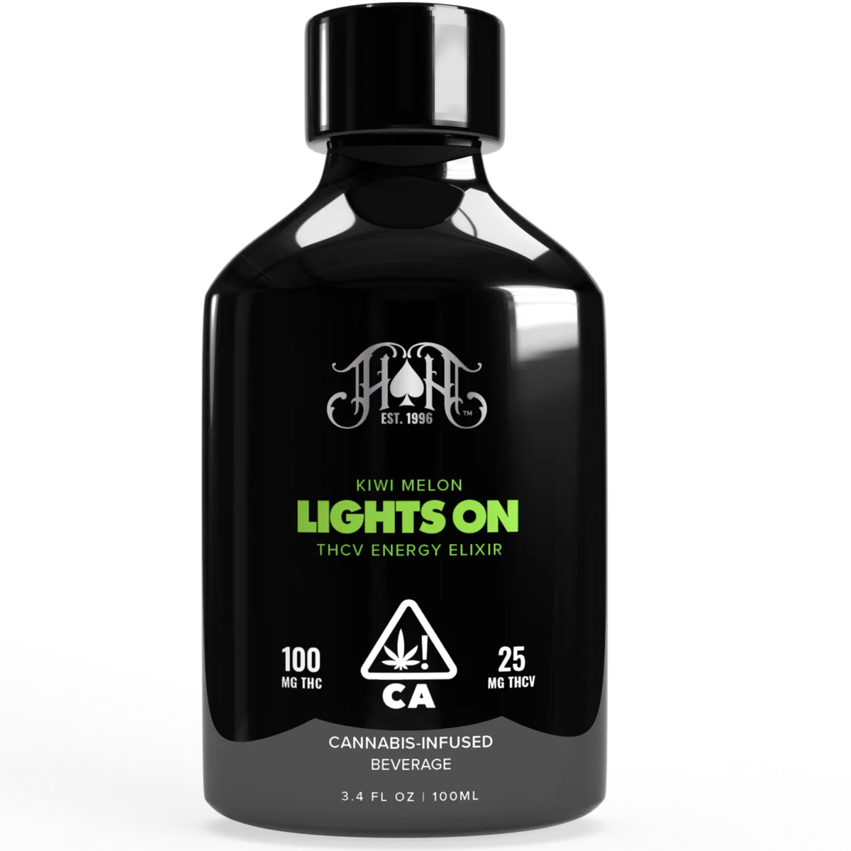 Introducing Heavy Hitter's Lights On Energy Elixir. Each Energy Elixir is packed with 100mg of THC, 25mg of THCV, and 100mg of caffeine to ignite your senses and unleash a wave of uplifting energy. Delivering a patented fast-acting formula and available in a sleek, low profile design, these Energy Elixirs are your ultimate on-the-go companion that slide effortlessly into your daily routine. Pure, potent, and powerful, experience best-in-class cannabis with Lights On Energy Elixirs.
