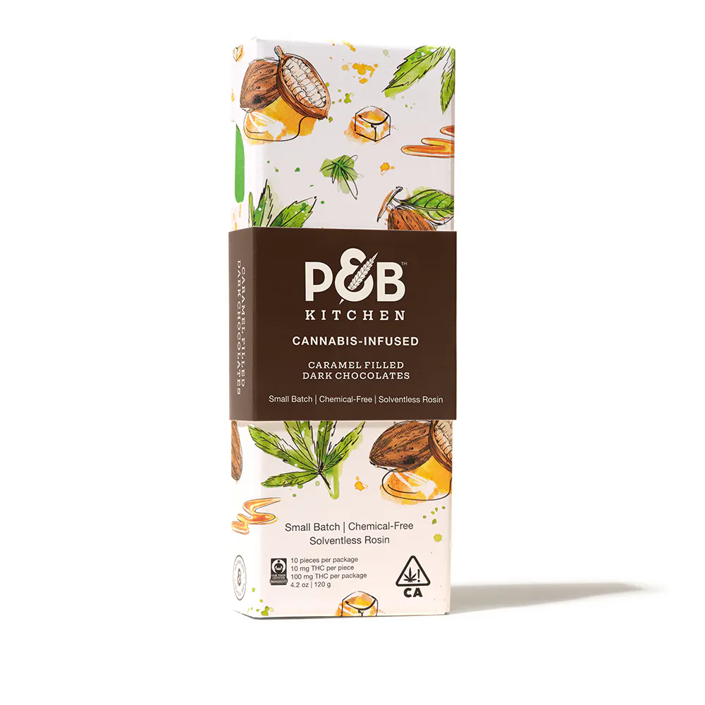 P&B Kitchen's delicious milk chocolate bites have a silky caramel interior for a taste and experience you’ll crave. Made with solventless fresh-pressed rosin, this soy-free, non-GMO edible allows you to relax ease. Each dark chocolate bite is Whole Plant Full Spectrum™ for a blissful, balanced feeling.