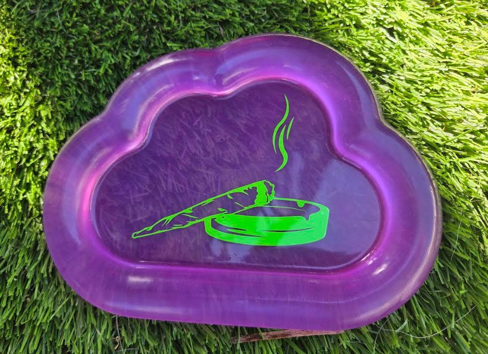 After a long day at work its time to chill! Get your high on in peace and just chillax. 6.5 inches Length X 5 inches Width. Purple Super Glow Epoxy with Neon Green Vinyl
